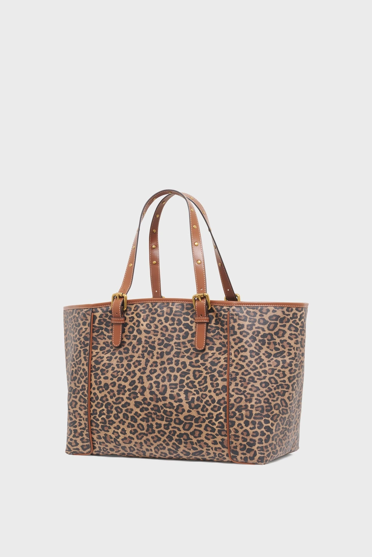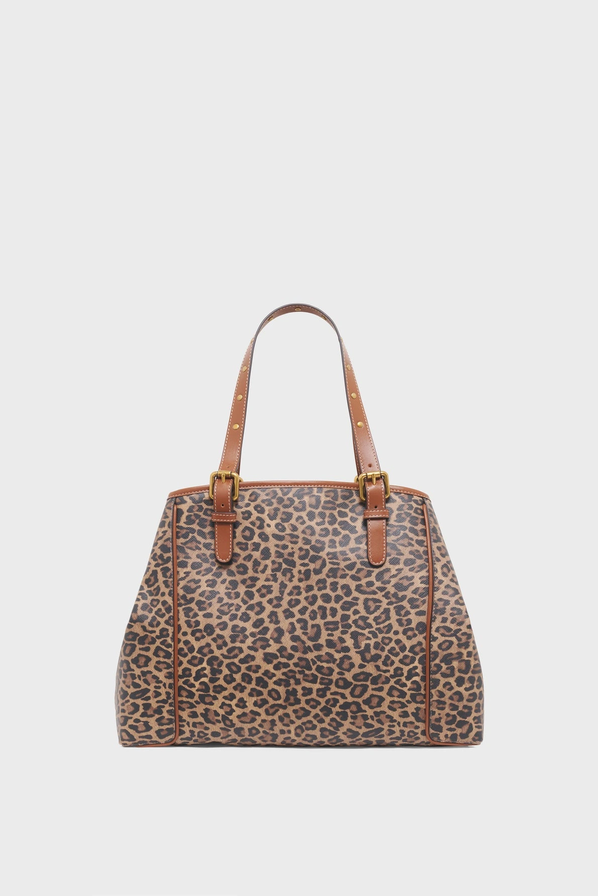 Cabas en toile enduite léopard et cuir – SIMPLE BAG