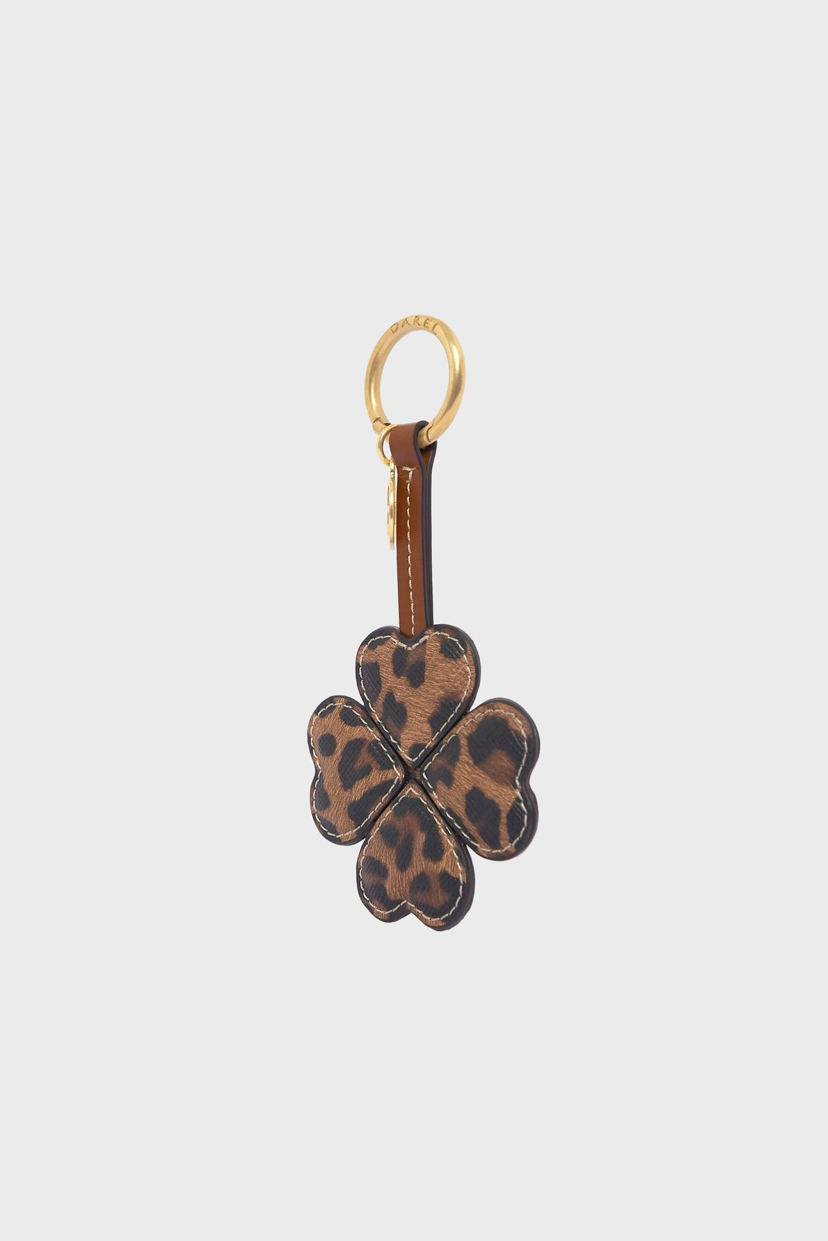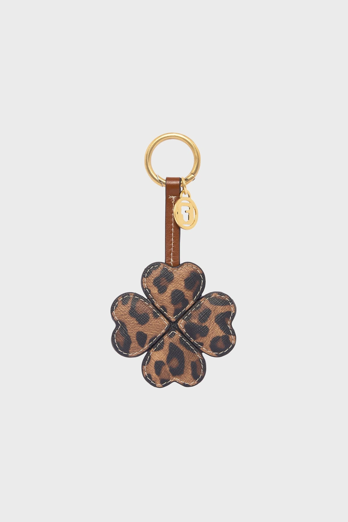 Charm en forme de trèfle conçu en toile enduite léopard et enrichi d’une médaille GD, est le parfait porte-bonheur à emporter partout avec vous. Raffiné et charmant, il s’accroche avec facilité à un sac ou à un passant de ceinture, pour sublimer vos looks.