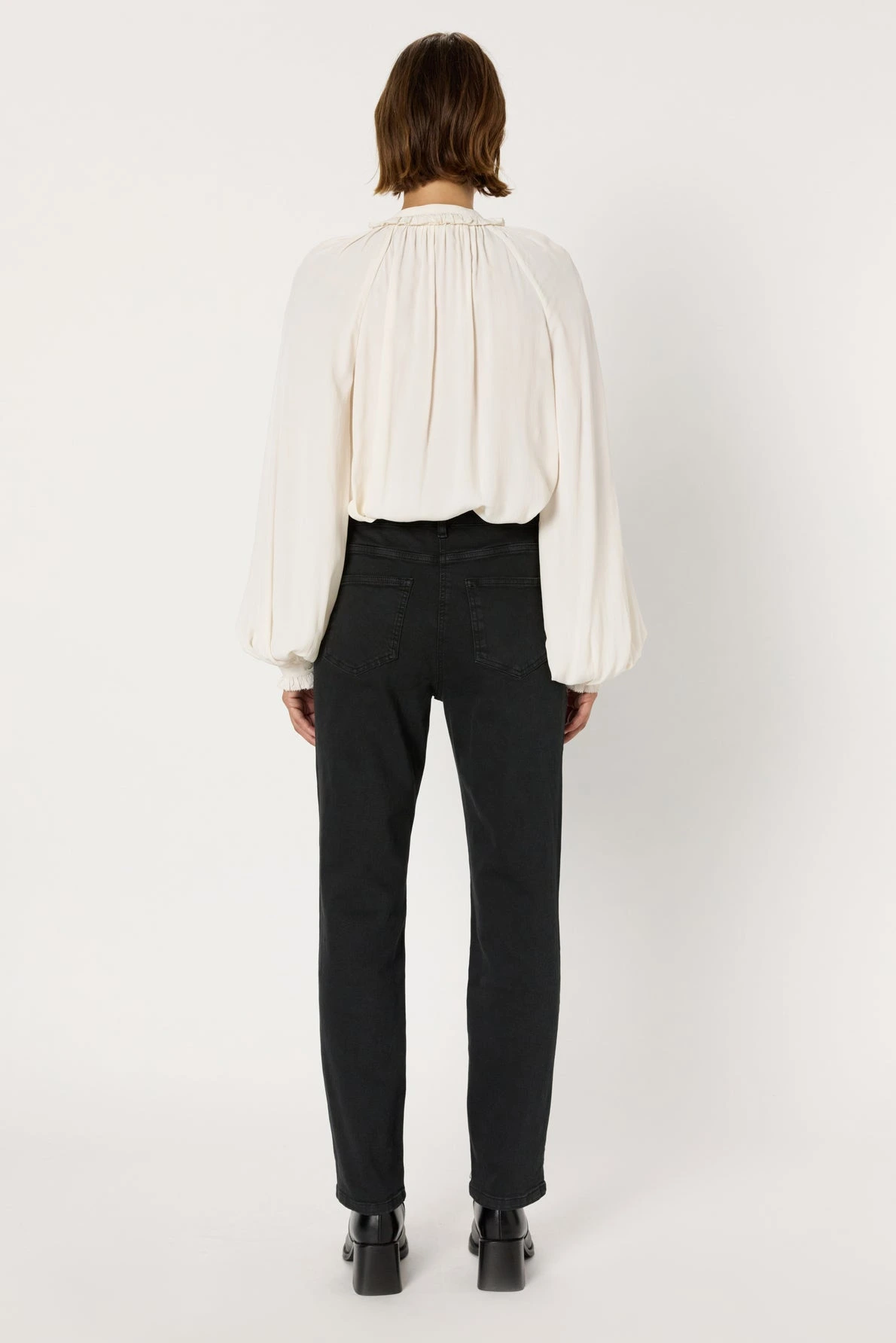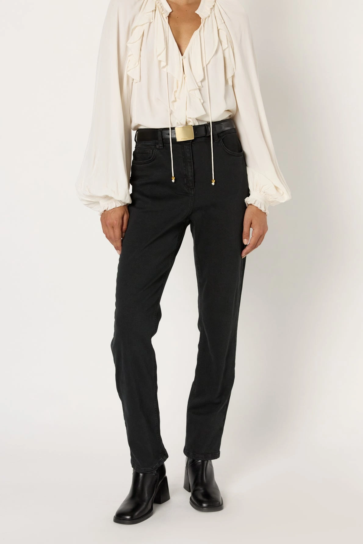 Jean beige droit, pièce classique et intemporelle. A porter casual ou chic avec un blazer.