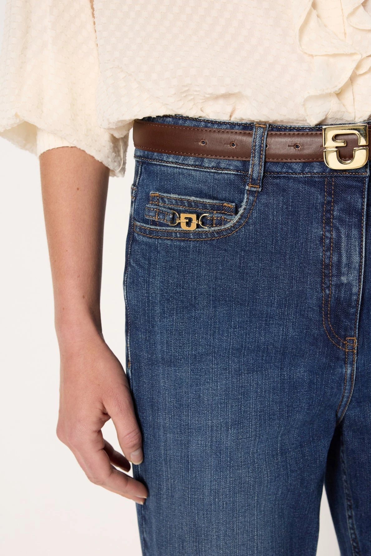 Jean bootcut à la poche agrémentée d’un GD doré. Effet vieilli dans un esprit vintage.