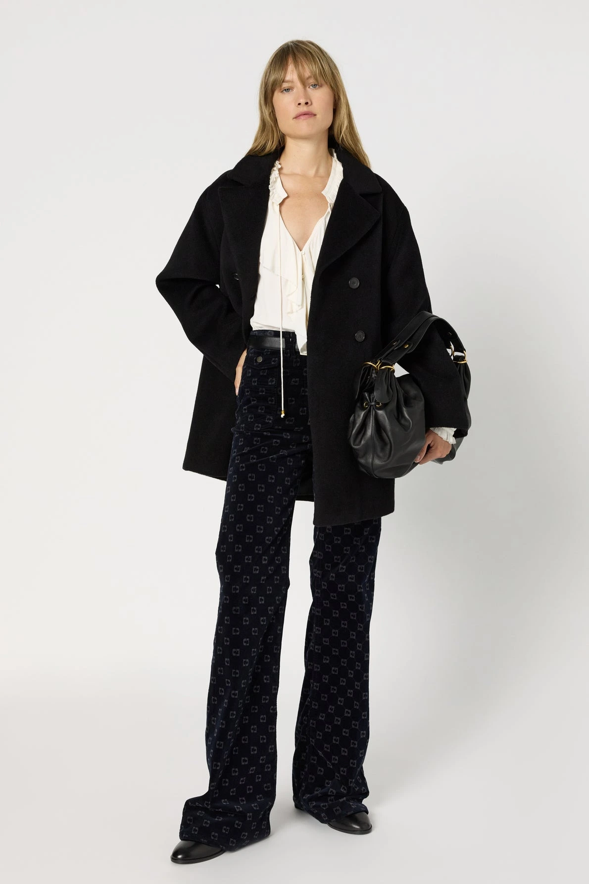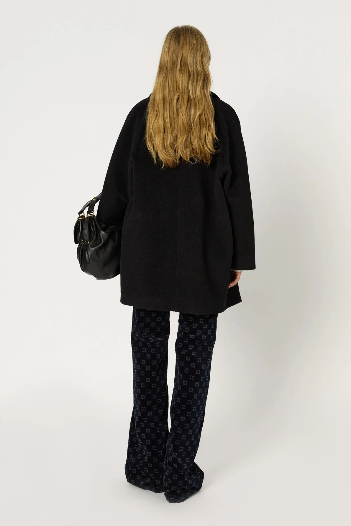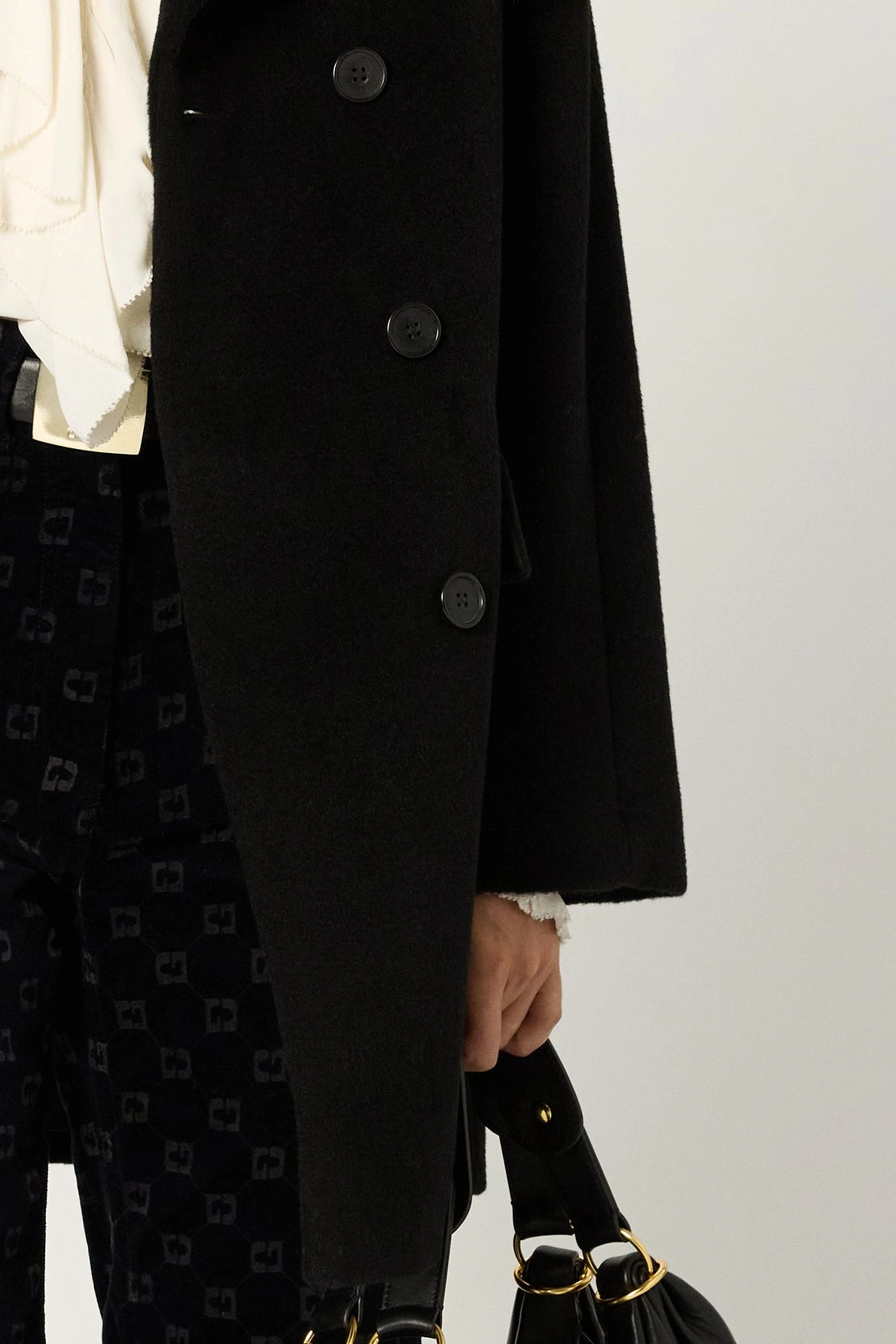 Esprit pardessus pour ce manteau croisé noir à boutonnage croisé. Il est confectionné en laine vierge et angora pour allier chaleur et douceur. Porté avec une tenue casual ou habillée, il apportera une note chic et atemporelle.