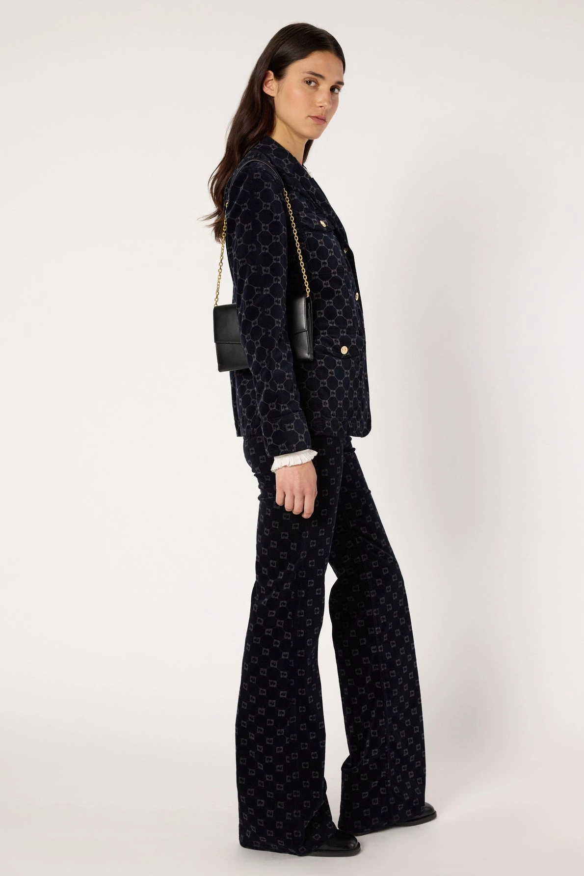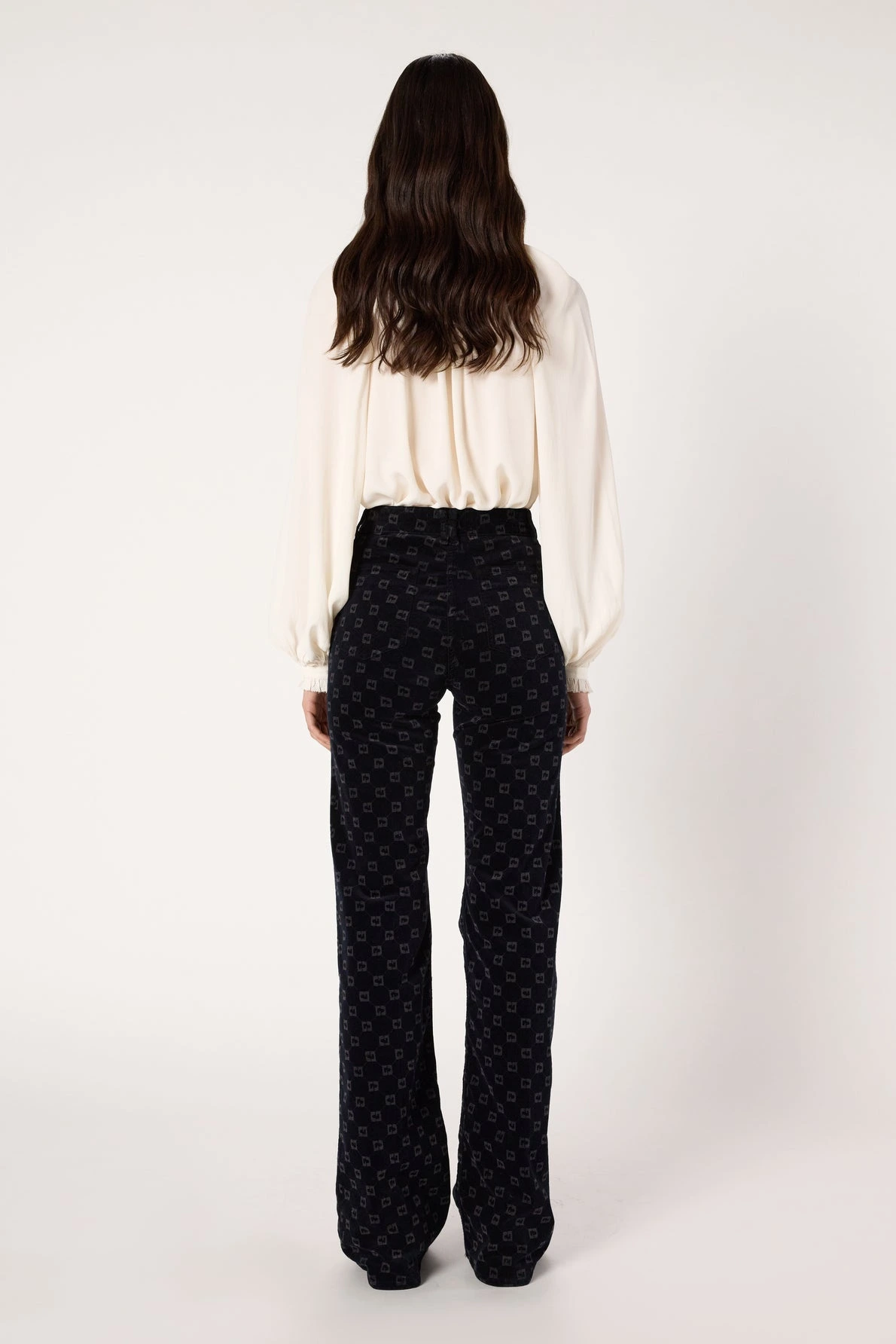 Esprit chic et tendance pour cette version velours du jean Anna, pantalon flare en velours, décliné en bordeaux et réhaussé du monogramme GD en all over. Sa forme flare allongera toutes les silhouettes.