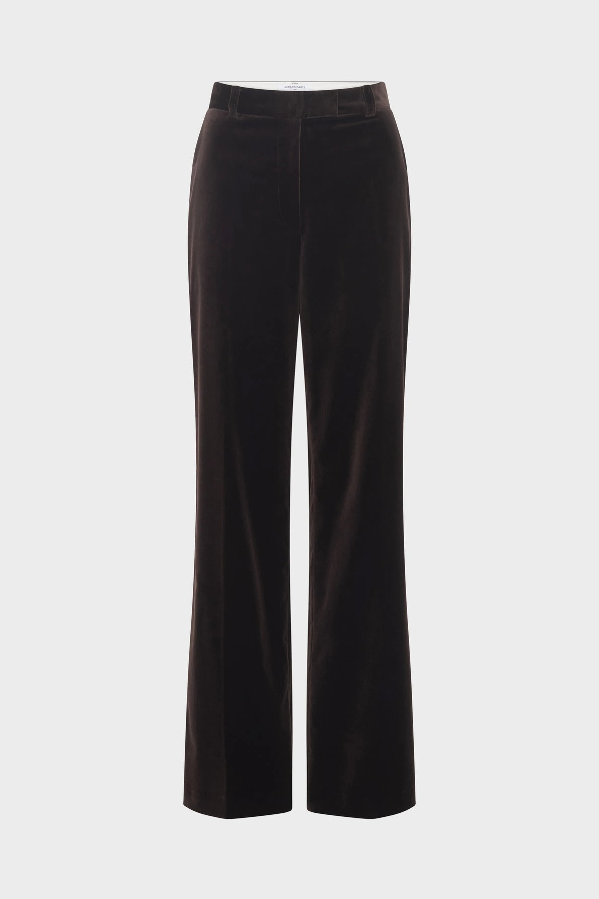 Le pantalon large en velours ras est la pièce maitresse des vestiaires chic. Décliné dans un marron intense, il pourra se porter avec la veste et le gilet sans manche assortis dans un esprit tailleur.