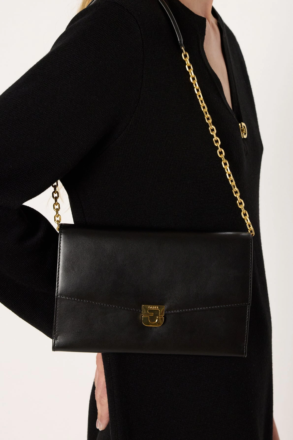 Cette pochette en cuir enveloppe en cuir et soulignée par une serrure en or portant les initiales de la Maison, est l’accessoire tendance par excellence. Dotée d’une bandoulière mêlant chaîne et cuir pour un confort chic et ajustable grâce à des bouton-pression, elle s’adapte à toutes vos envies. Ultra-fonctionnelle, elle offre une organisation idéale avec ses divers emplacements et poches. Parfait pour accompagner vos journées comme vos soirées avec élégance.