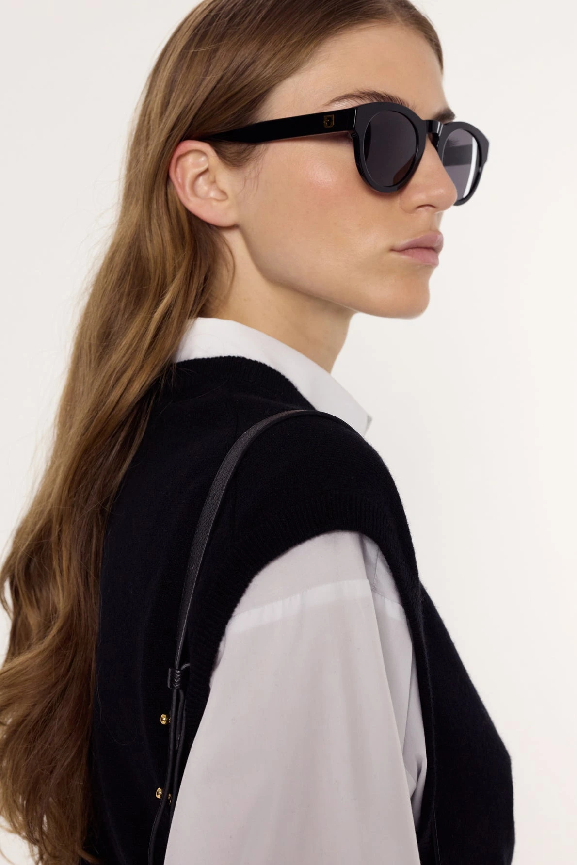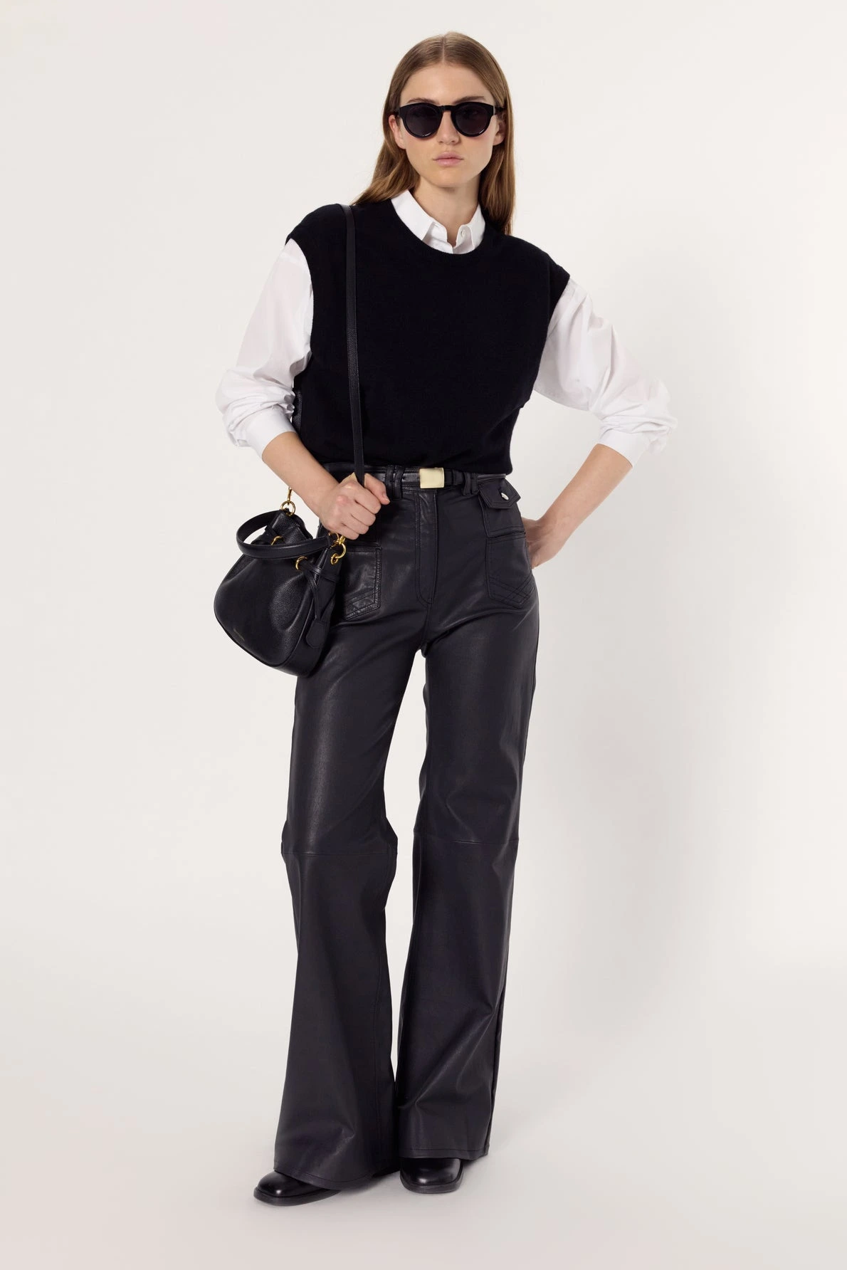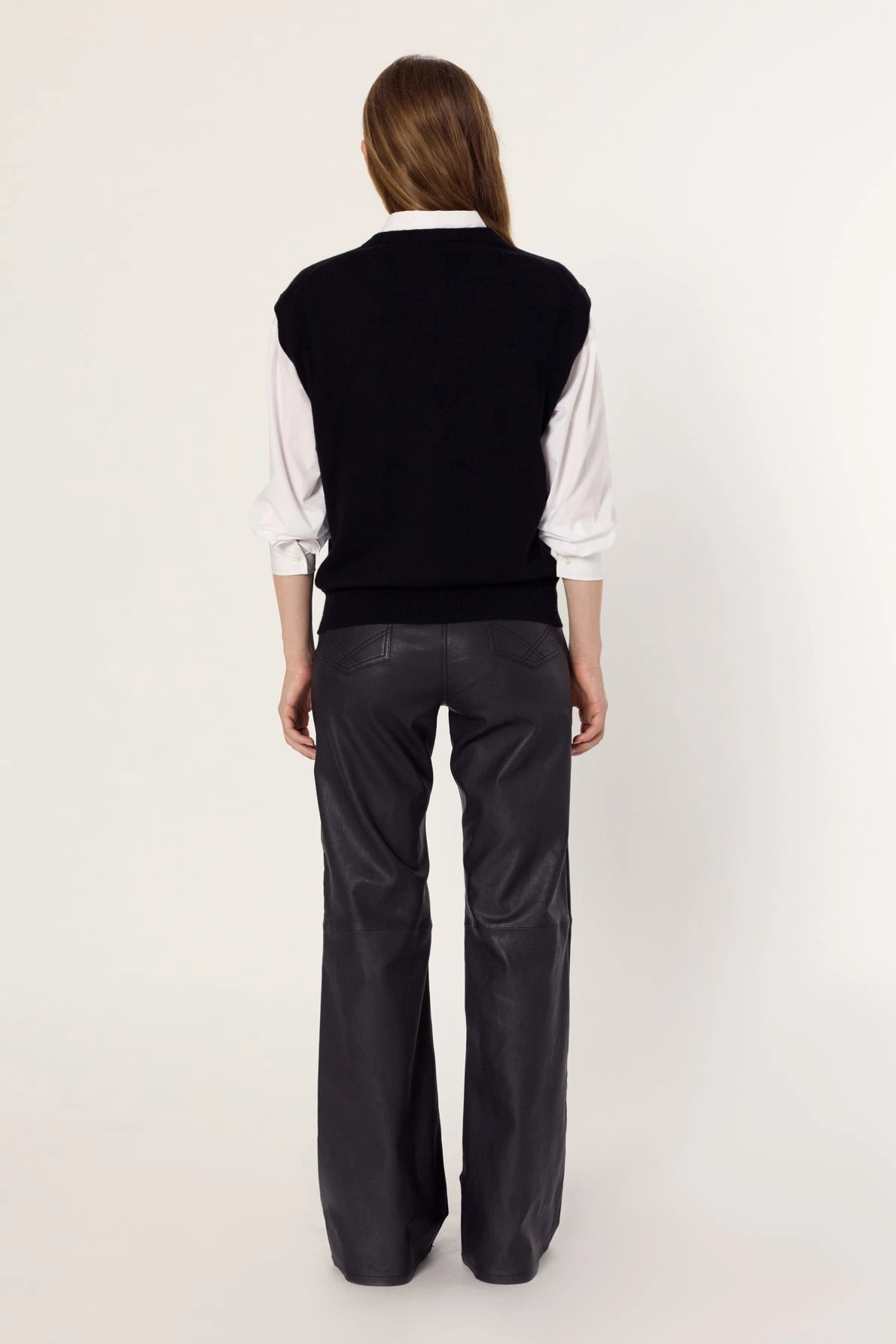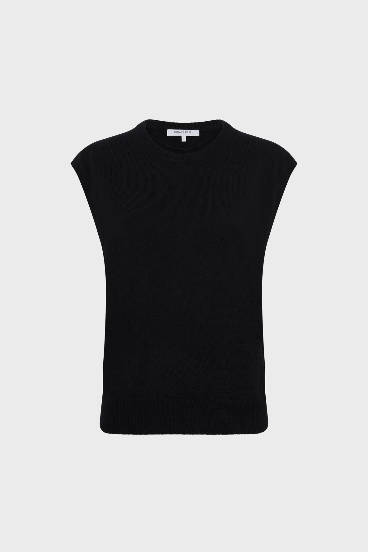 Pull sans manche en cachemire noir, à porter sur une chemise ou à même la peau.