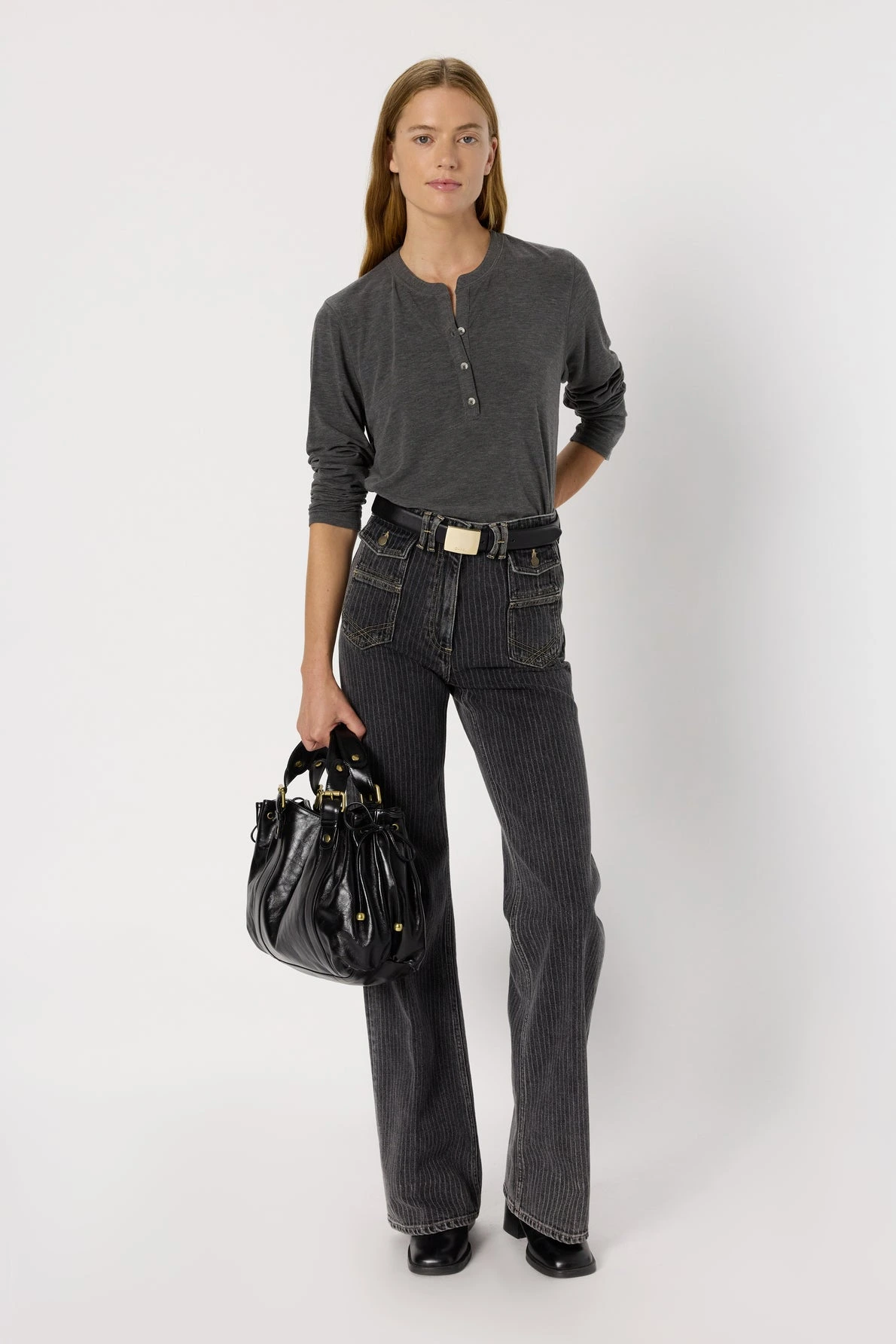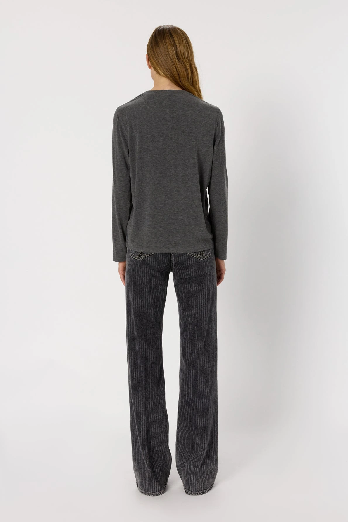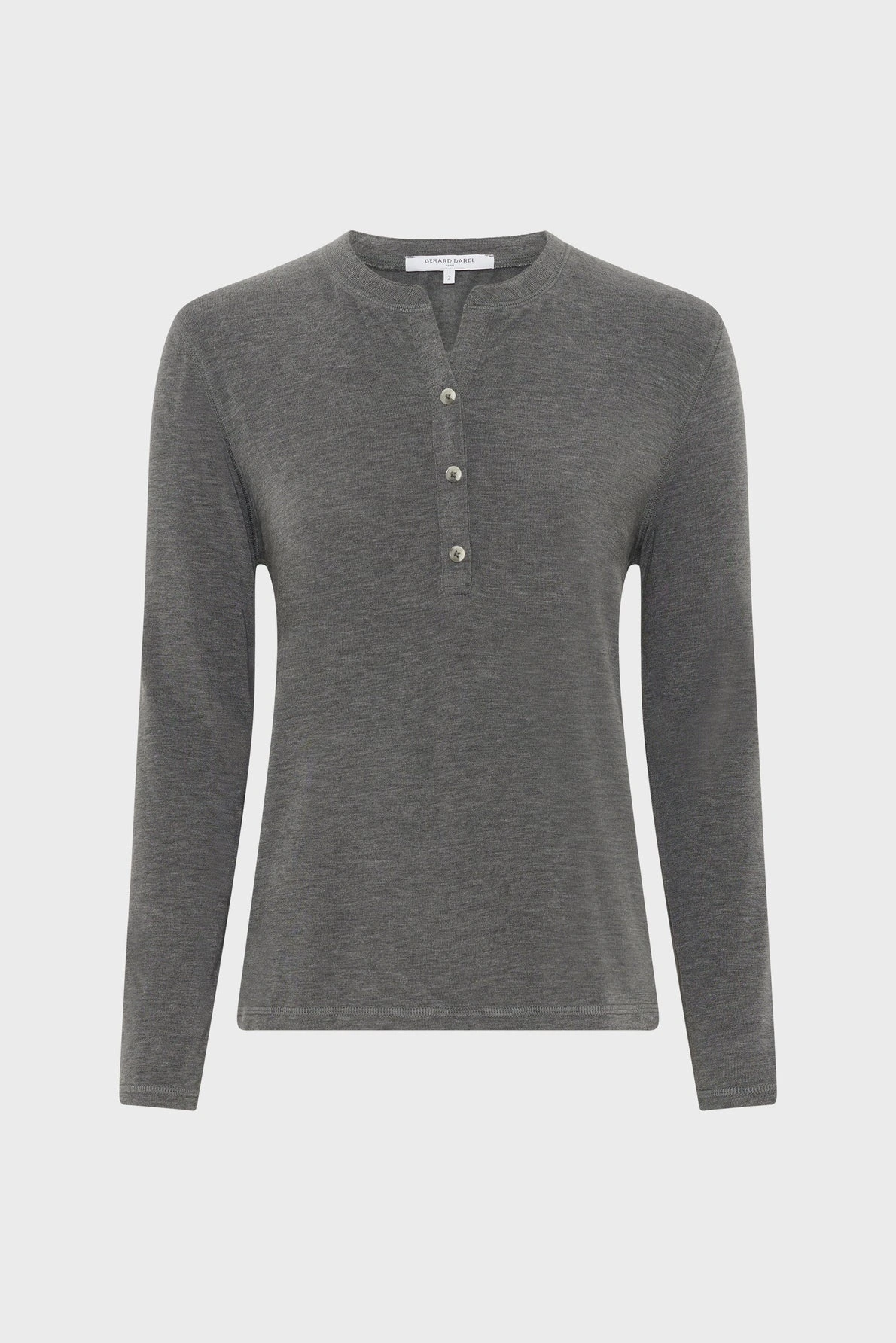 T-shirt à manches longues et col tunisien en gris chiné. A porter avec un blazer pour un esprit casual chic. Confectionné dans un mélange au toucher doux.