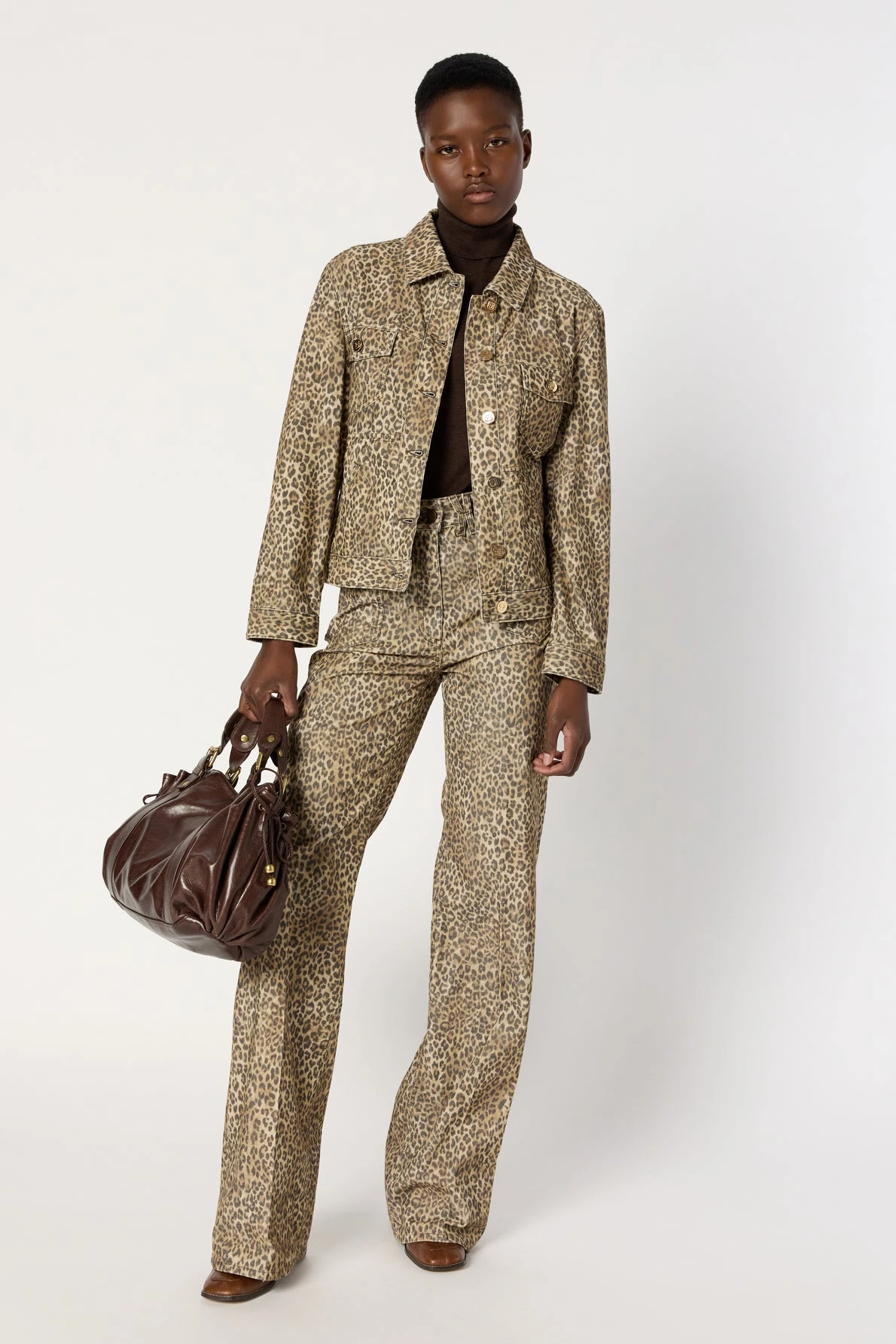 Veste courte en velours à col chemise dans un esprit veste en jean. Ornée d’un motif léopard, elle est confectionnée en velours milleraies qui offre une légère brillance. Elle se portera aussi bien avec des pantalons classiques qu’un jean ou une jupe. Assortie avec le pantalon flare léopard, elle jouera le total look ! Idéale pour l’entrée de saison.
