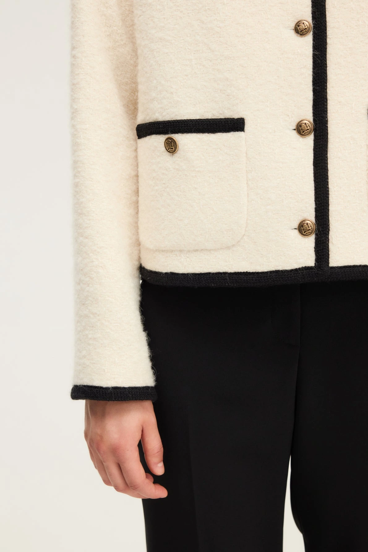 - Veste fermée par des boutons gravés en métal