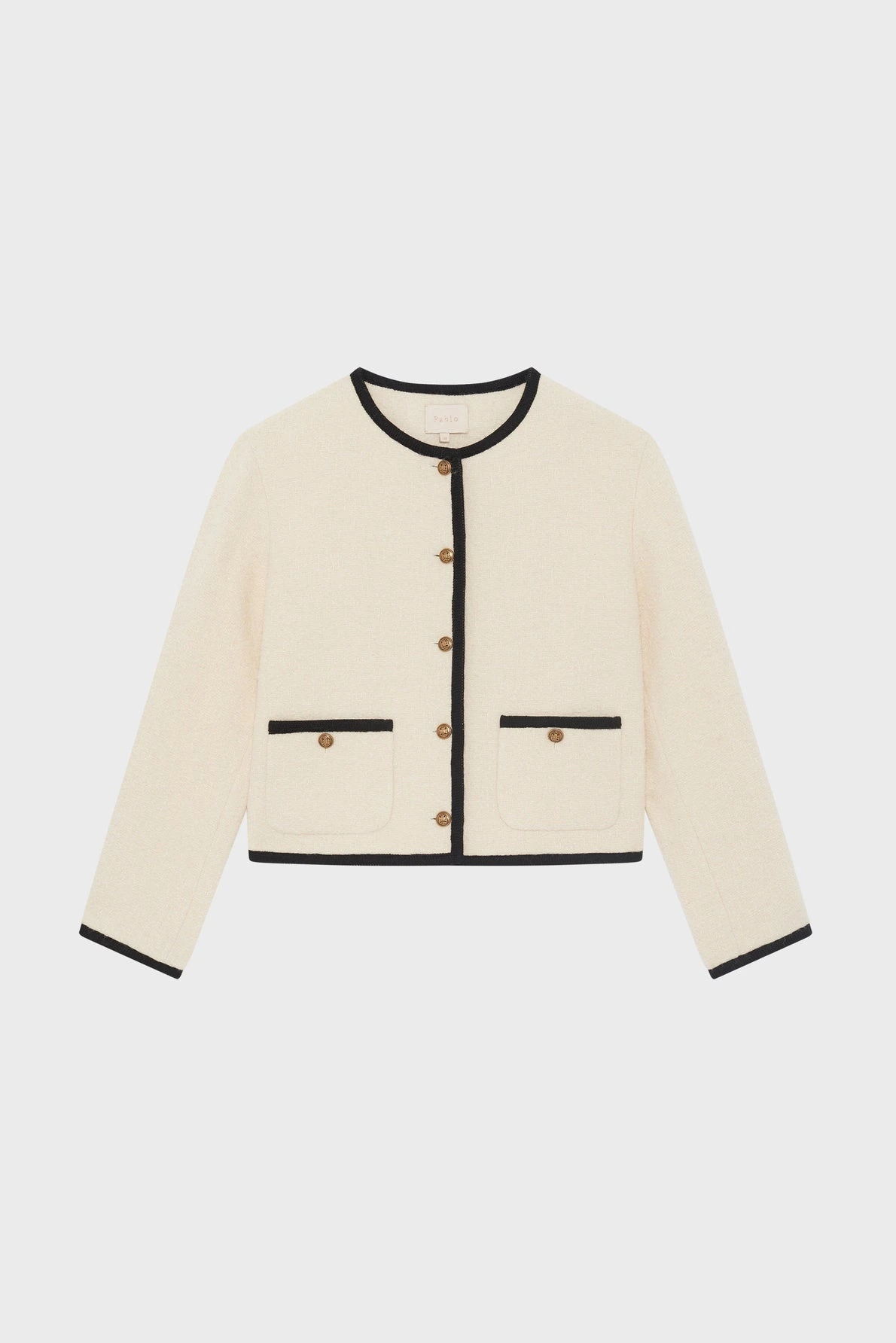 Esprit preppy pour la veste en tweed Nalya, qui se démarque par son côté bicolore écru et noir. Elle est confectionnée dans un mélange contenant de la laine et du coton à l’aspect bouclé, et orné de boutons gravés d’un blason.