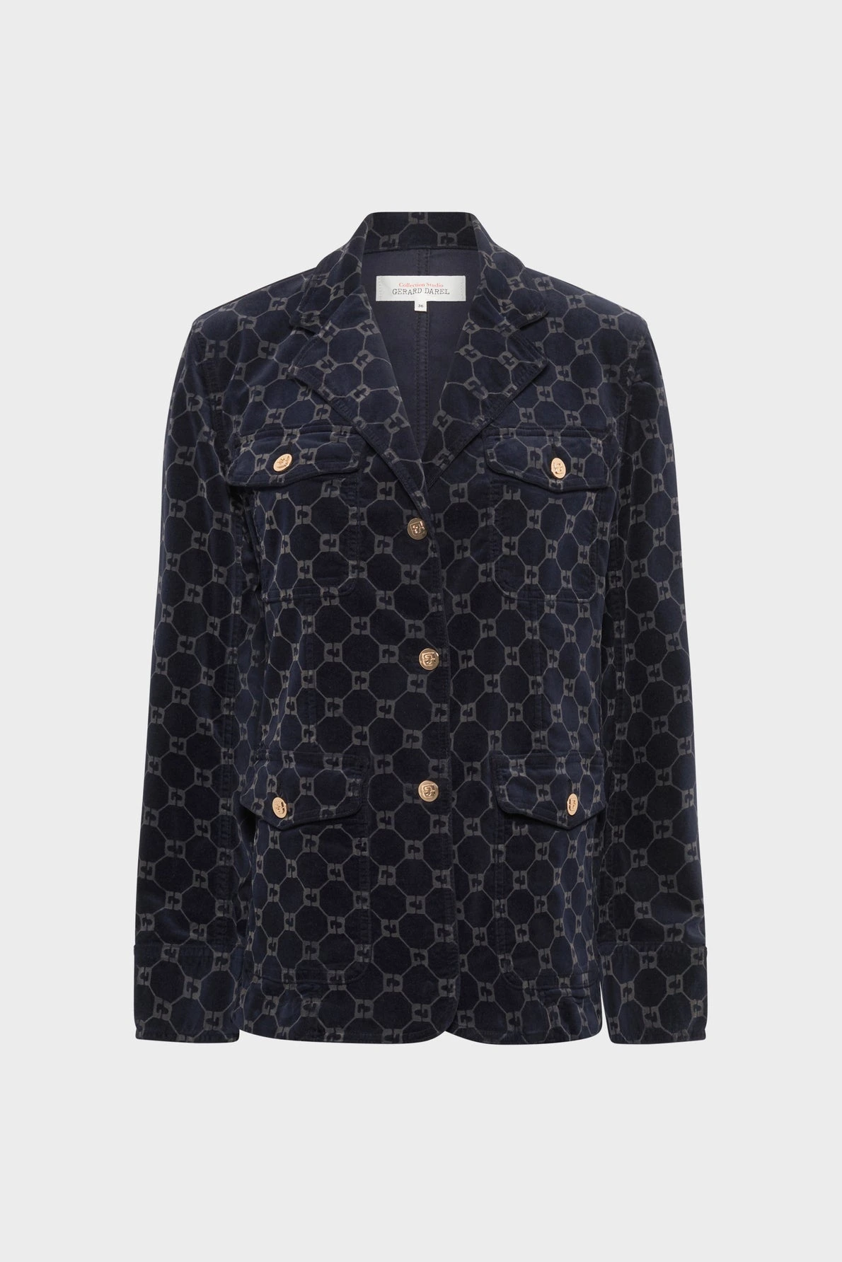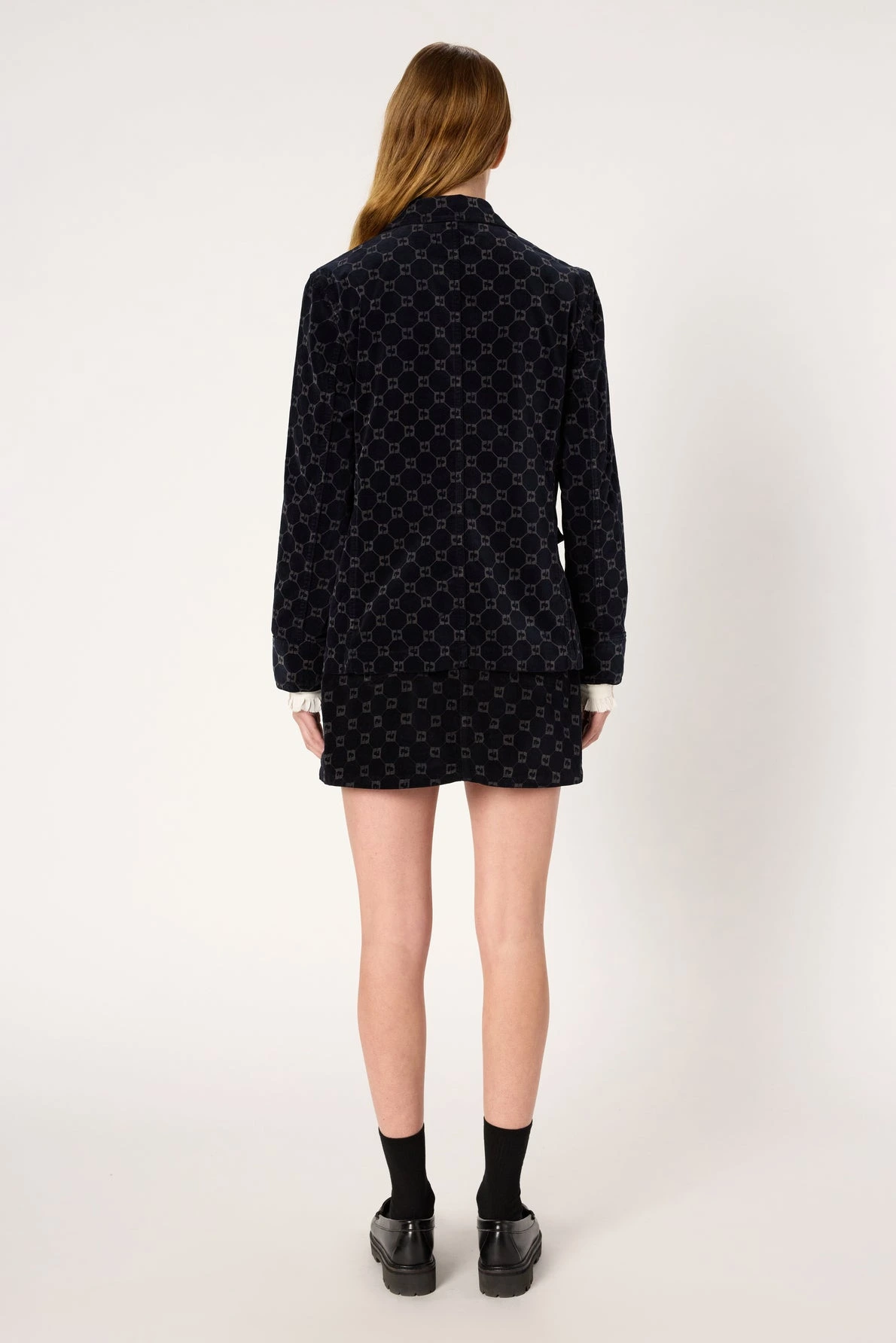 Confectionnée en velours bleu marine et ornée du monogramme GD, cette veste en velours offre un petit air seventies. Ses boutons dorés ajoutent une touche féminine, tandis sa silhouette structurée assure un tombé impeccable. A porter avec le pantalon assorti pour un look très chic.