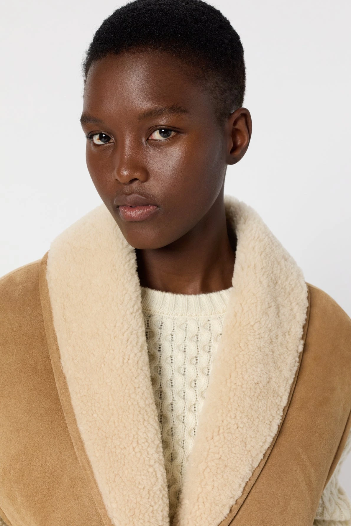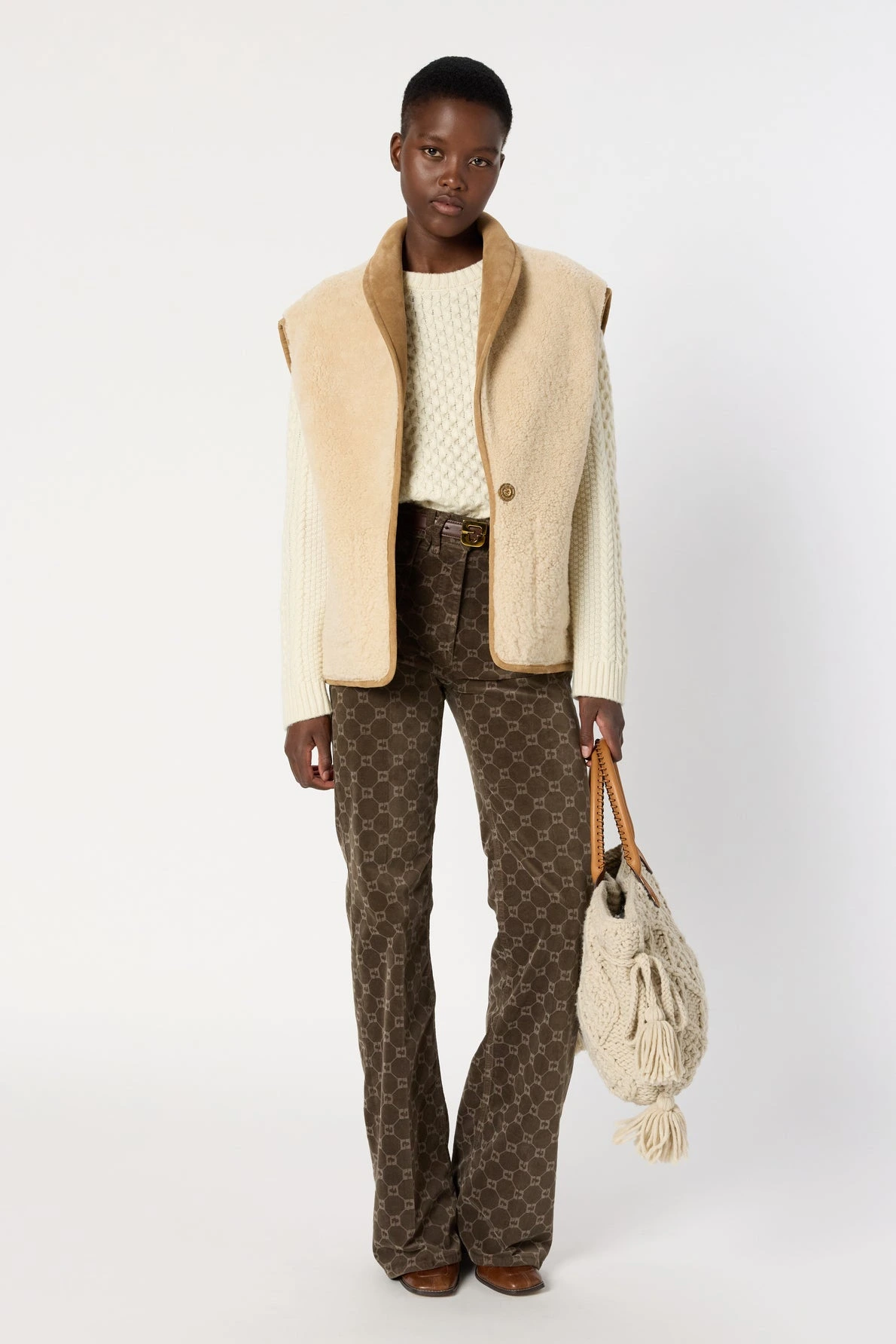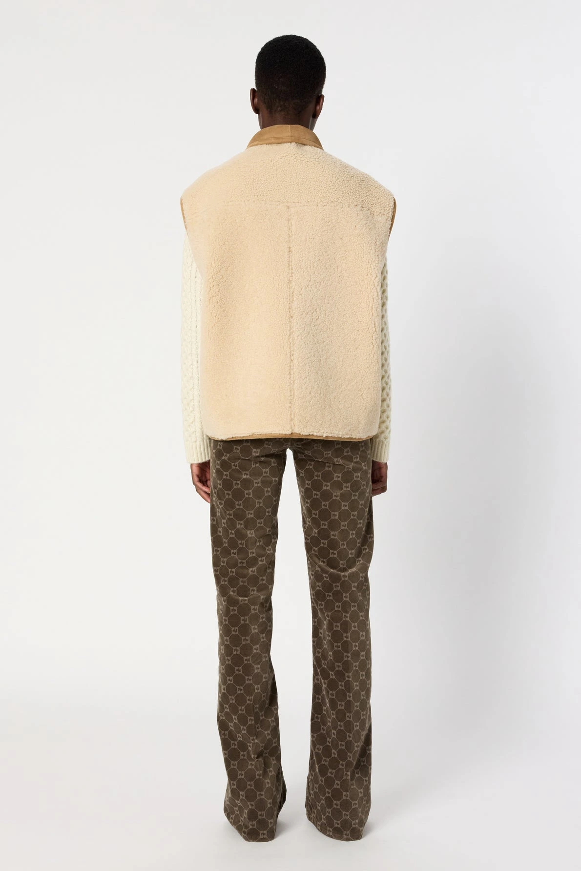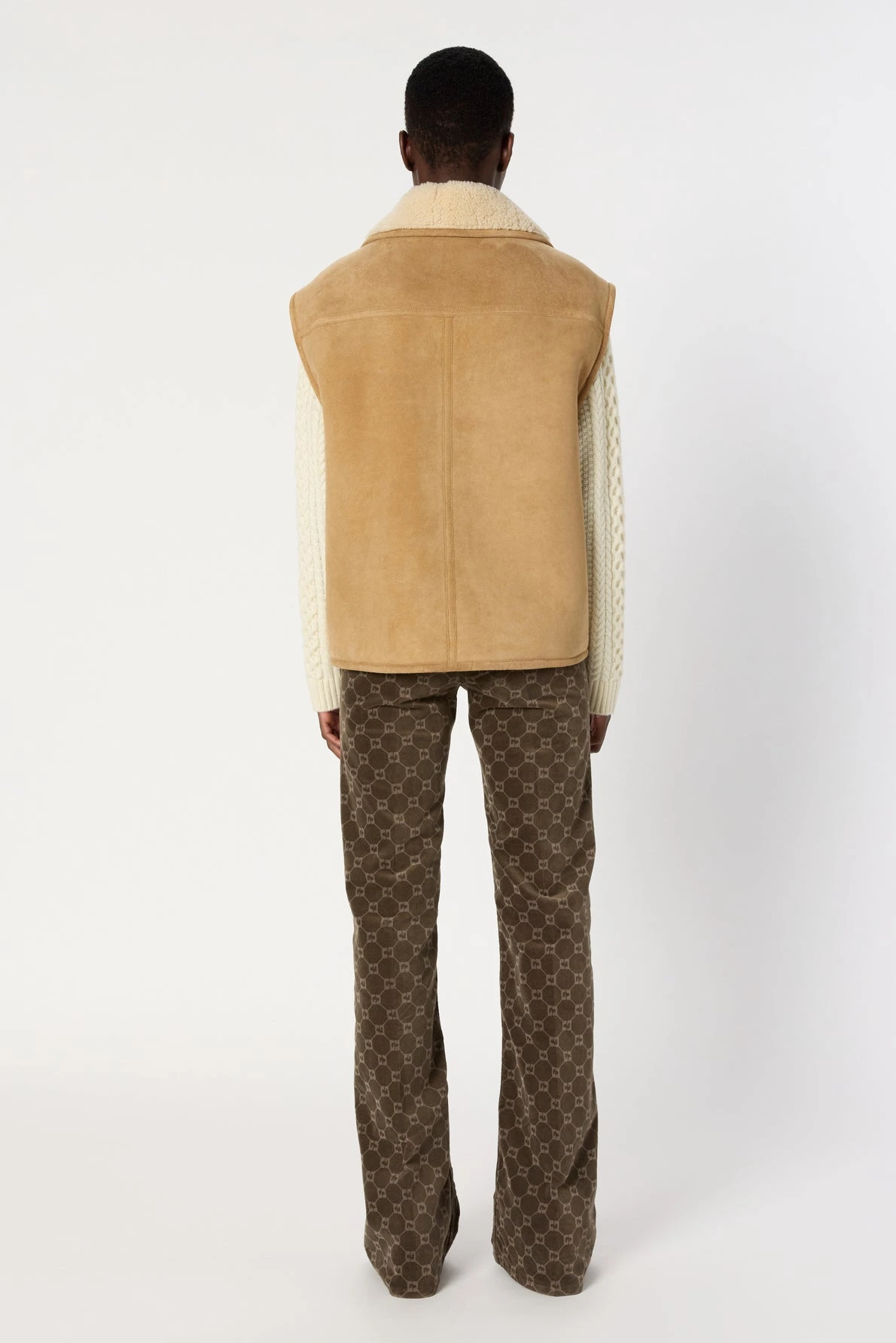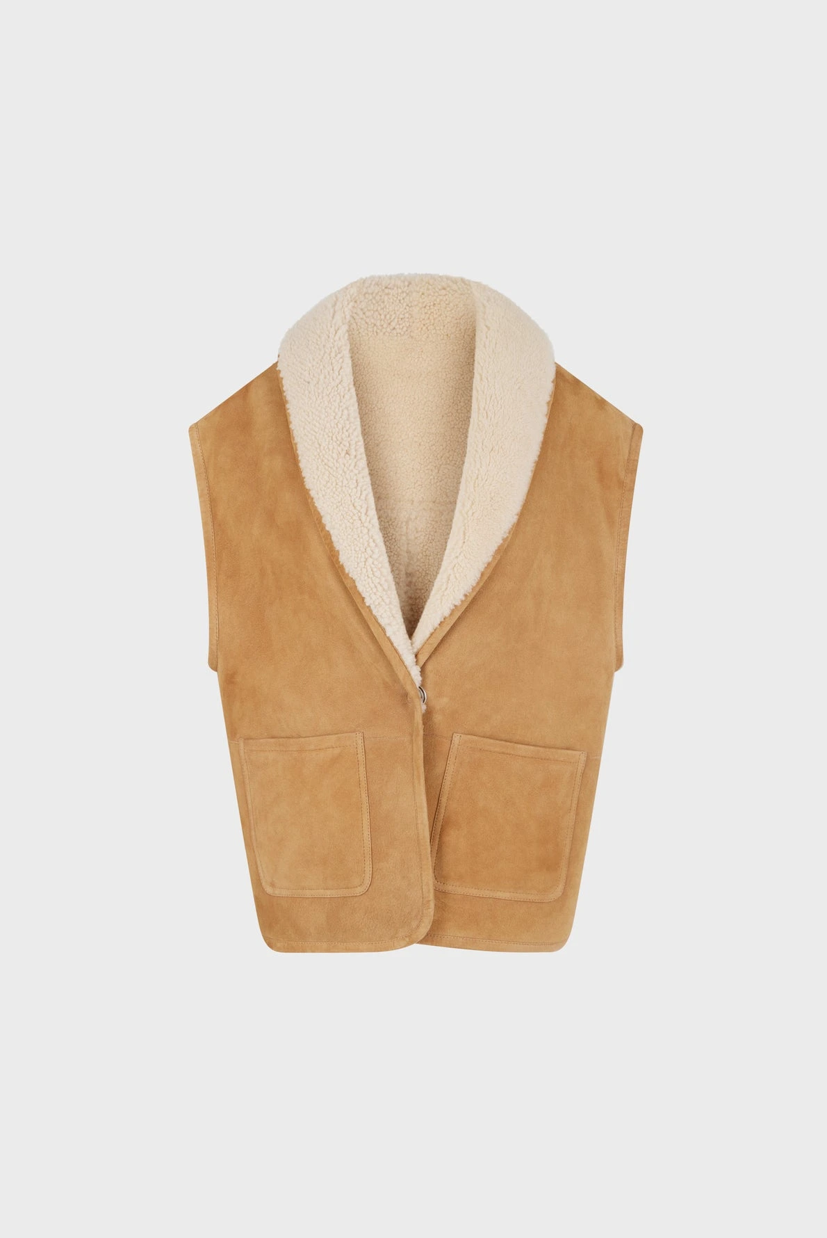 Veste sans manche en peau lainée, pour un look citadin décontracté. 100% peau de mouton.